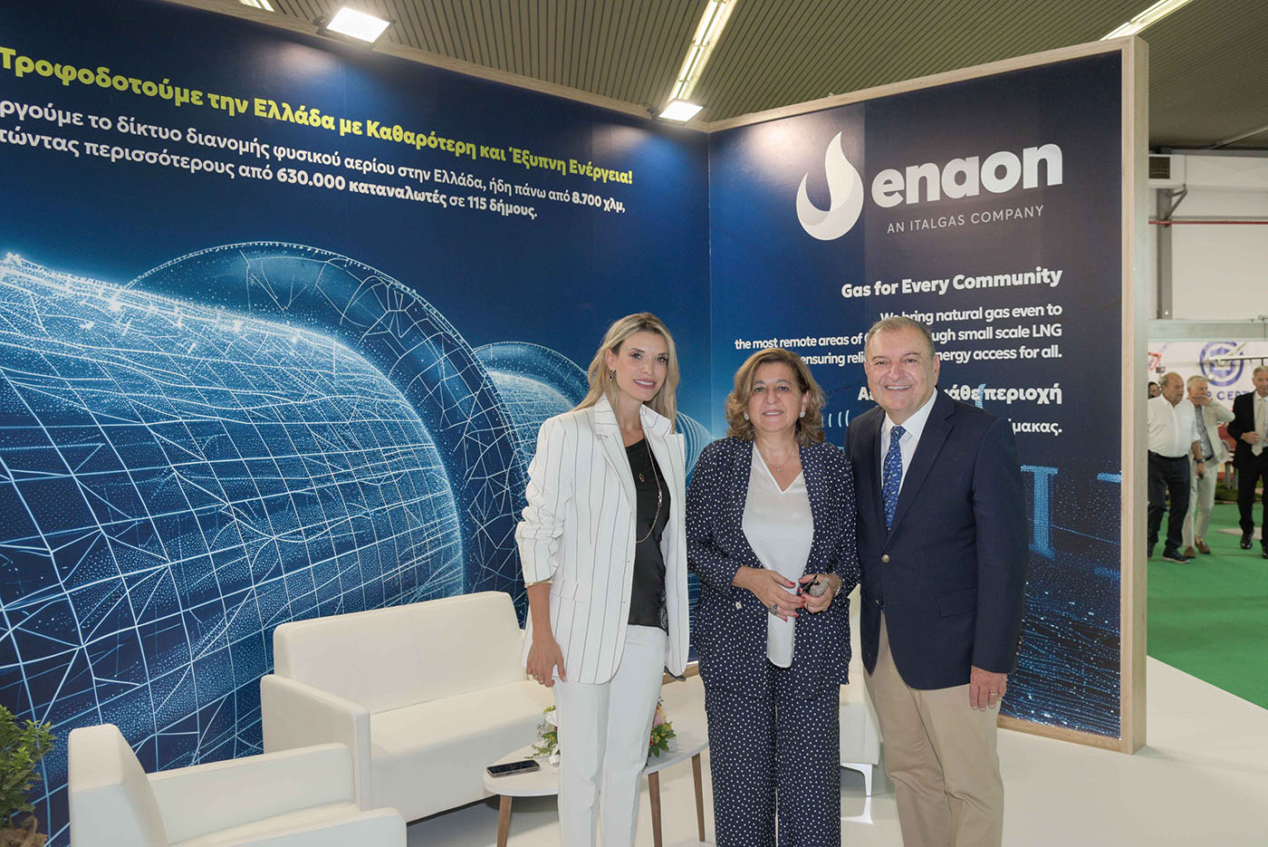 The Enaon΄s Pavilion was also visited by the Deputy Minister of Energy, Mr. Nikos Tsafos, the Secretary General of Energy and Mineral Raw Materials, Ms. Despina Paliarouta, the Press Representative of Nea Dimokratia, Ms. Alexandra Sdoukou, the Regional Governor of Central Greece, Mr. Fanis Spanos, the Regional Governor of Western Greece, Mr. Nektarios Farmakis, the Deputy Regional Governor of Development and Environment of Central Macedonia, Mr. Kostas Gioutikas, the President of the Regional Union of Municipalities of Central Macedonia, Mayor of Pylaia, Mr. Ignatios Kaitezidis, the Member of Parliament Thessaloniki A and Deputy Secretary-General of the Nea Dimokratia Parliamentary Group Mr Diamantis Golidakis as well as representatives of the political life of the country and institutional bodies. The guests were welcomed at Pavilion 10 / Stand 20 of the Greek company of the Italgas Group by the CEO of Enaon, Ms. Barbara Morgante, and the CEO of its subsidiary Enaon EDA, Ms. Francesca Zanninotti.